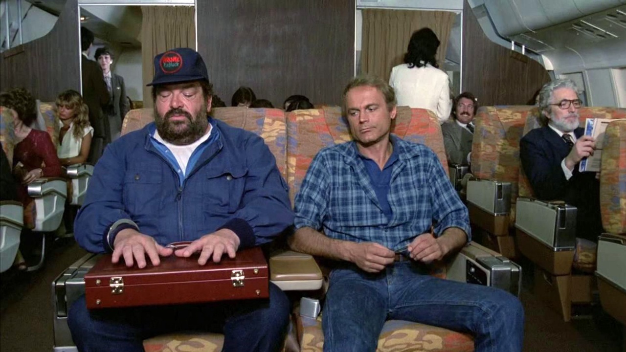 Sinopsis: Rosco Frazer (Terence Hill) es un simpático viajero que vagabundea por las autopistas y casi es atropellado por un enorme camión conducido por dos tipos fuertes. Doug O’Riordan (Bud Spencer), un gigante barbudo, acaba de salir de prisión y está disfrutando de su comida en un área de descanso, cuando Rosco descubre al camión aparcado allí… Con la ayuda de Doug, Rosco consigue vengarse de los dos tipos. A partir de ahí se desencadenarán una serie de acontecimientos que les llevarán a ser tomados primero por ladrones y luego por agentes especiales de viaje en misión extraordinaria.