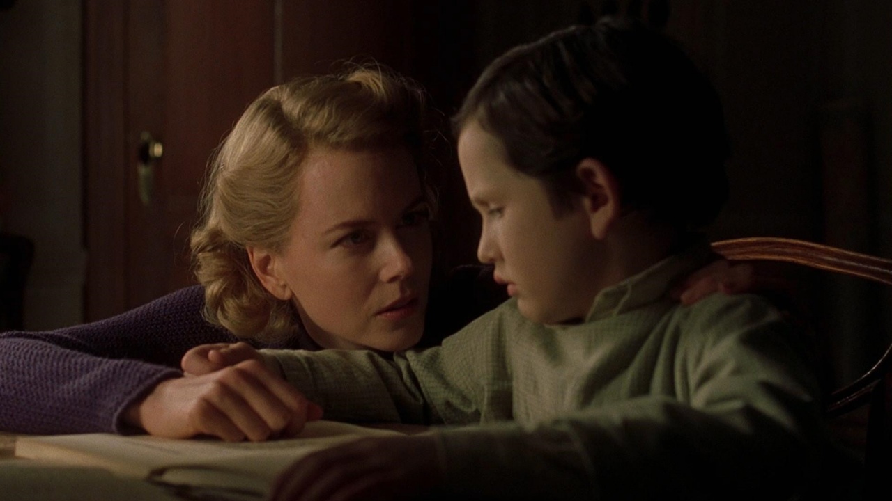 Sinopsis: Nos encontramos en la isla de Jersey, Canal de la Mancha, en 1945. Grace (Nicole Kidman), vive en una mansión victoriana con sus dos hijos pequeños, Anne (Alakina Mann) y Nicholas (James Bentley). Viven sin perder la esperanza el regreso de su marido y padre, que se fue a la guerra y aún no ha vuelto, a pesar de que ésta ya ha acabado. Respondiendo a un anuncio que solicita los servicios de una limpiadora, una mujer que cuide a los niños y un jardinero, aparecen en escena tres misteriosos personajes: Mrs. Bertha (Fionnula Flanagan), Mr. Tuttle (Eric Sykes) y una chica muda que responde al nombre de Lydia (Elaine Cassidy). Pese a la insistencia de Grace por enseñarles la casa, posteriormente descubre que se la conocen como la palma de su mano, porque ya habían trabajado allí anteriormente. De todas formas tienen que tener nuevas normas en cuenta: «No se podrá abrir ninguna puerta sin haber cerrado la anterior». Para ello Grace les entrega un llavero de quince llaves para las cincuenta puertas que hay en la casa. Además todas las cortinas deben estar echadas, no puede entrar en la casa un solo rayo de luz. La razón está en los niños, son fotosensibles y la luz les puede provocar llagas e incluso la muerte. La vida cotidiana de la casa se mantiene entre el estudio de los niños, educados en severas normas religiosas, y las labores de Grace, temerosa de que cualquier sobresalto pueda afectar a sus hijos. Pero los niños, sobre todo Anne, que es menos inocente que su hermano, insisten en que hay fantasmas en la casa. Primero Anne asusta a Nicholas con sus historias, pero más tarde comenzará a asustar también a su madre, que se desahoga con Mrs. Bertha. ¿Qué misterio esconde esta casa?