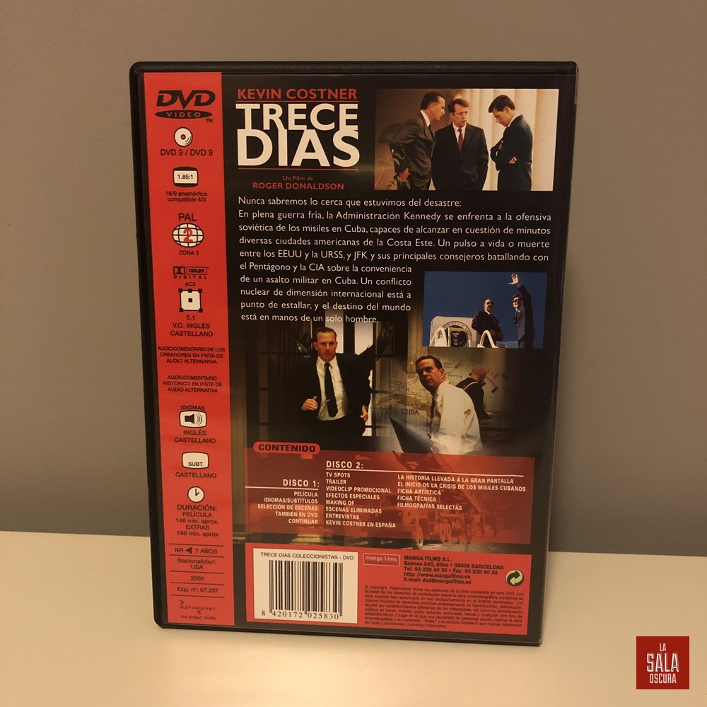 La crisis de los misiles cubanos fue unos de los puntos más calientes de la Guerra Fría, y muchos analistas coinciden en señalar que el mundo nunca estuvo tan cerca de su final como en aquellos dantescos 13 días. La reconstrucción histórica de lo acontecido en 1962 durante la crisis es precisa y, aunque está contada únicamente desde el bando americano, la distancia de los años hace que la visión de lo ocurrido sea mucho más objetiva. La película contiene actuaciones de alto nivel y supone el fin de la travesía por el desierto de Kevin Costner. A pesar de su duración y temática, los thrillers políticos suelen ser lentos y tediosos, el ritmo no decae en ningún momento y la tensión va en aumento segundo a segundo. Lo único negativo es que ya conocemos el desenlace de antemano, y eso resta el efecto sorpresa del final.
